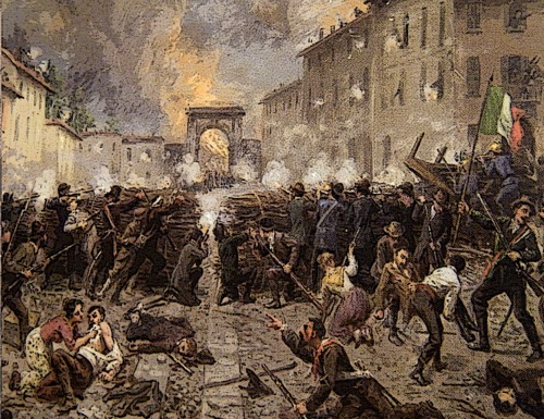 Nel 1848, sulla duplice spinta delle altre Rivoluzioni europee e dell’entusiasmo per l’elezione di un Papa presunto liberale – il Cardinale Mastai di Senigallia - tutto il Paese insorse, da Milano a Venezia, da Firenze a Roma e a Napoli.