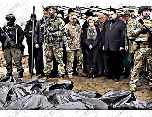 La gentile Signora è stata traumatizzata dai dirigenti ucraini, abituati a ben altre temperie, quando l’hanno portata a vedere i cadaveri ammucchiati in una fossa comune senza nemmeno essere messi nelle casse da morto.