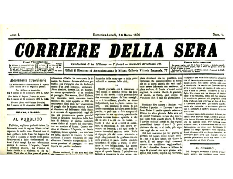 Il Corriere della Sera venne fondato nel 1876, non soltanto in coincidenza con la sostituzione nel Governo nazionale della Destra Storica con la Sinistra Storica, ma soprattutto come reazione a questo evento.