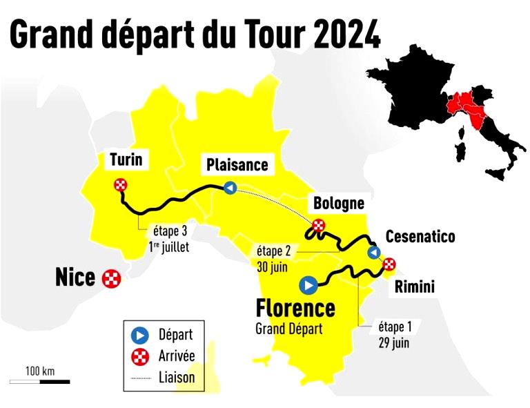 Il Tour de France del 2024 partirà da Torino, e quindi – prima di passare le Alpi – farà tappa a Bologna e a Firenze.
